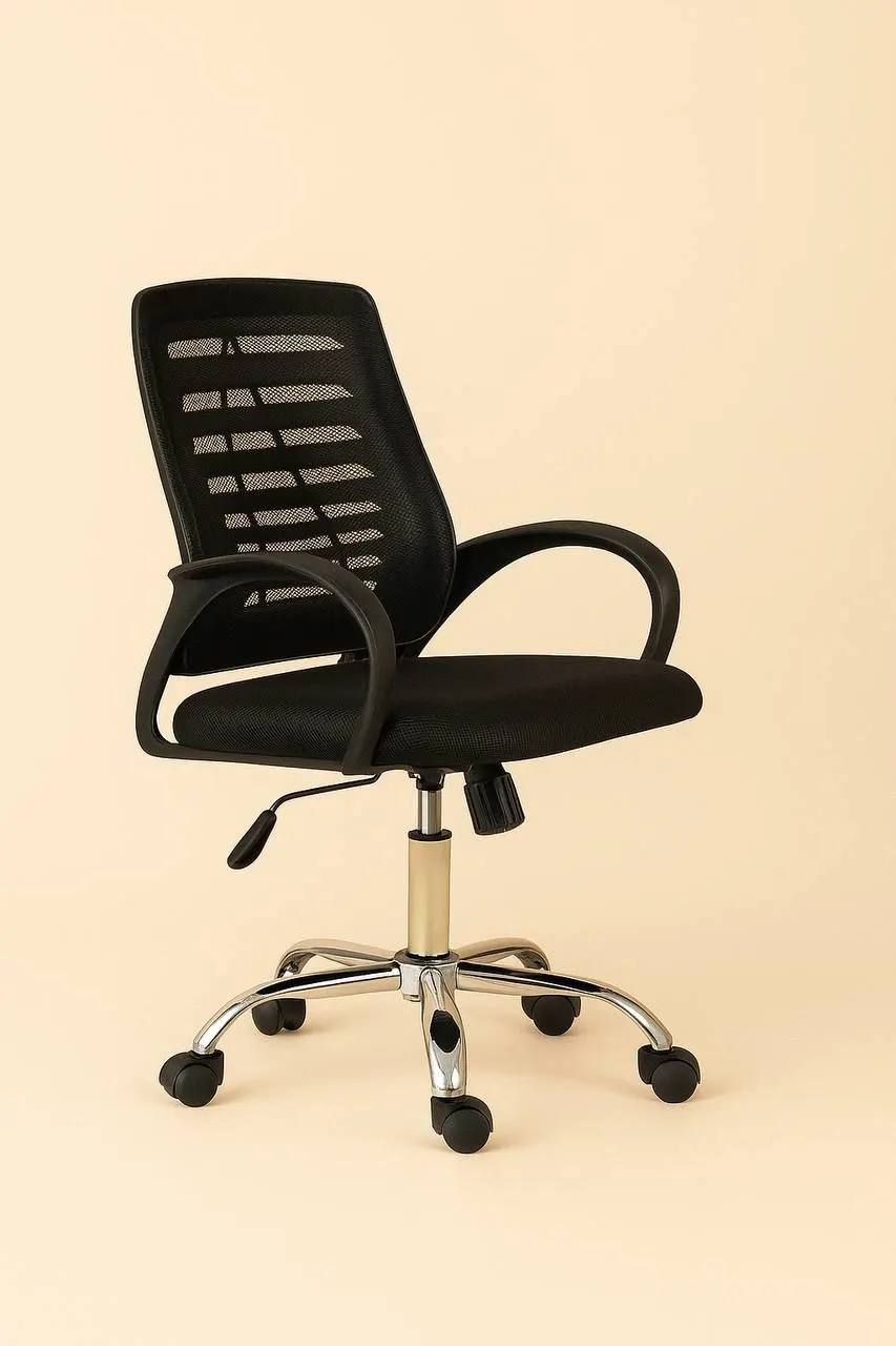 La silla cuenta con reposabrazos ergonómicos que alivian la tensión de brazos y hombros, y su base giratoria de 360° con ruedas suaves permite desplazarse con facilidad sobre distintos tipos de superficie. Además, incorpora un mecanismo de ajuste de altura y de inclinación que permite personalizar la posición según las necesidades del usuario, facilitando tanto el trabajo concentrado como momentos de relajación. Su diseño estilizado y contemporáneo la hace adecuada para oficinas modernas, estudios profesionales o espacios de trabajo en casa, ofreciendo un equilibrio perfecto entre funcionalidad, confort y estética.